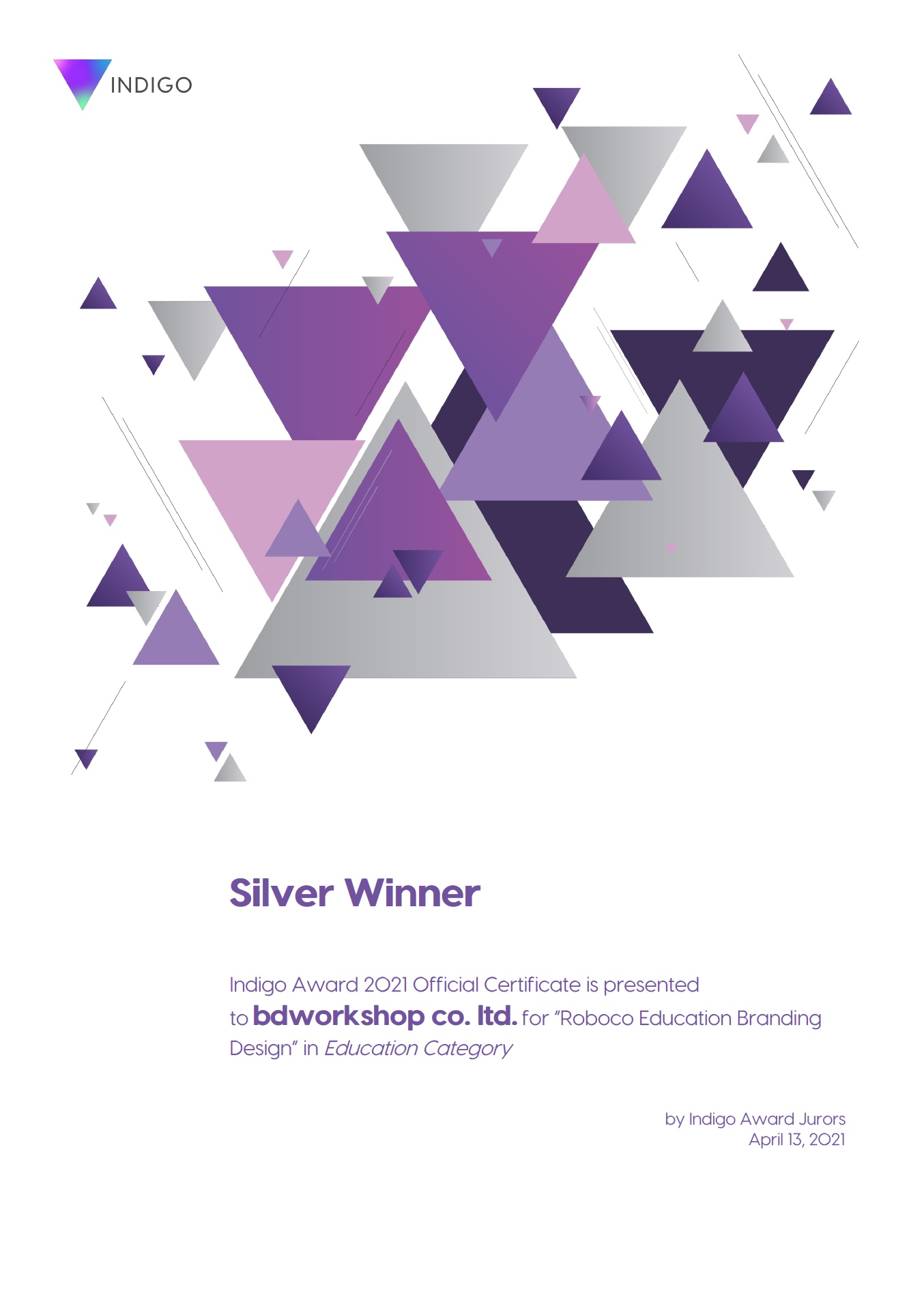 Indigo Awards 2021 - Roboco Education Branding home