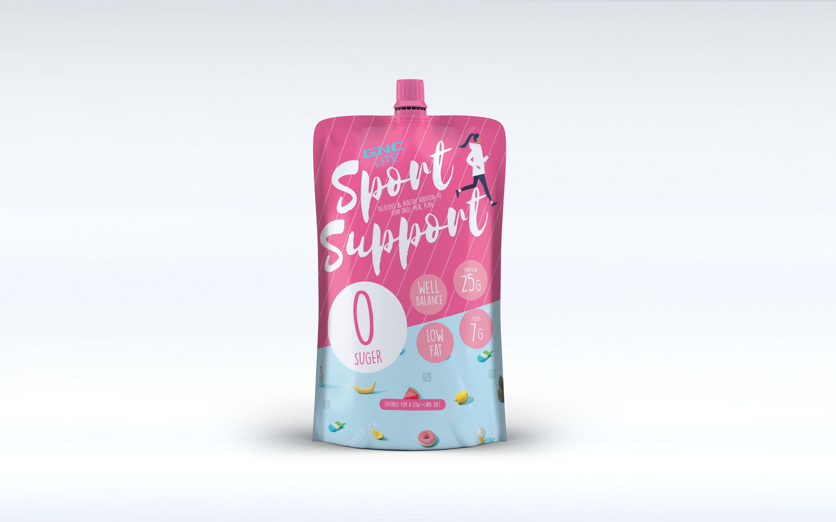Our design philosophy demands that we incorporate youthful and snack-related elements into the conceptual design, while still retaining the original GNC style. For this project, we have made a bold investment in fluorescent pink and illustrations as key elements, to steer clear of the commonplace blue and white color scheme used in sports snacks and to captivate the new target market of young females.