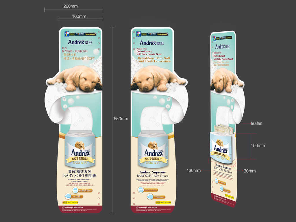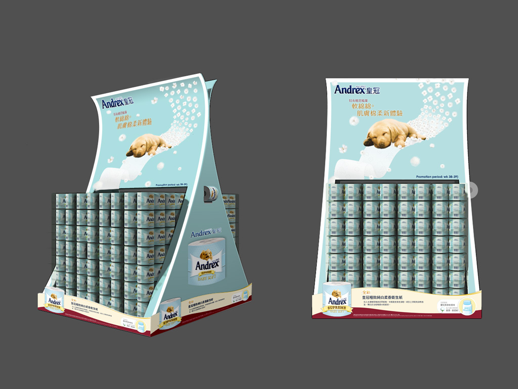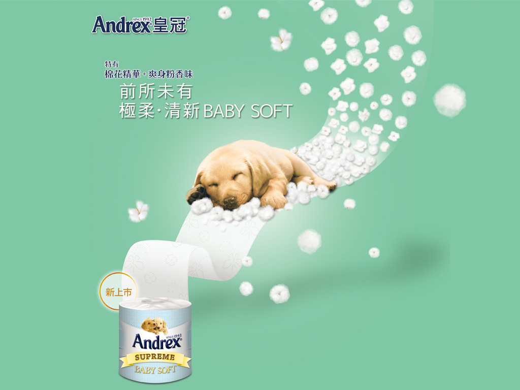 A completely new product line Andrex Supreme Baby for Andrex families. With added cotton extract further, enhanced softness Improvement on thickness and enhanced strength texture. We start this project with packaging design for Tissue roll, we designed a brand new identity for this new product. At the same time, our team had produce a new key visual for the promotion and also some above and below the line's items for the whole campaign.