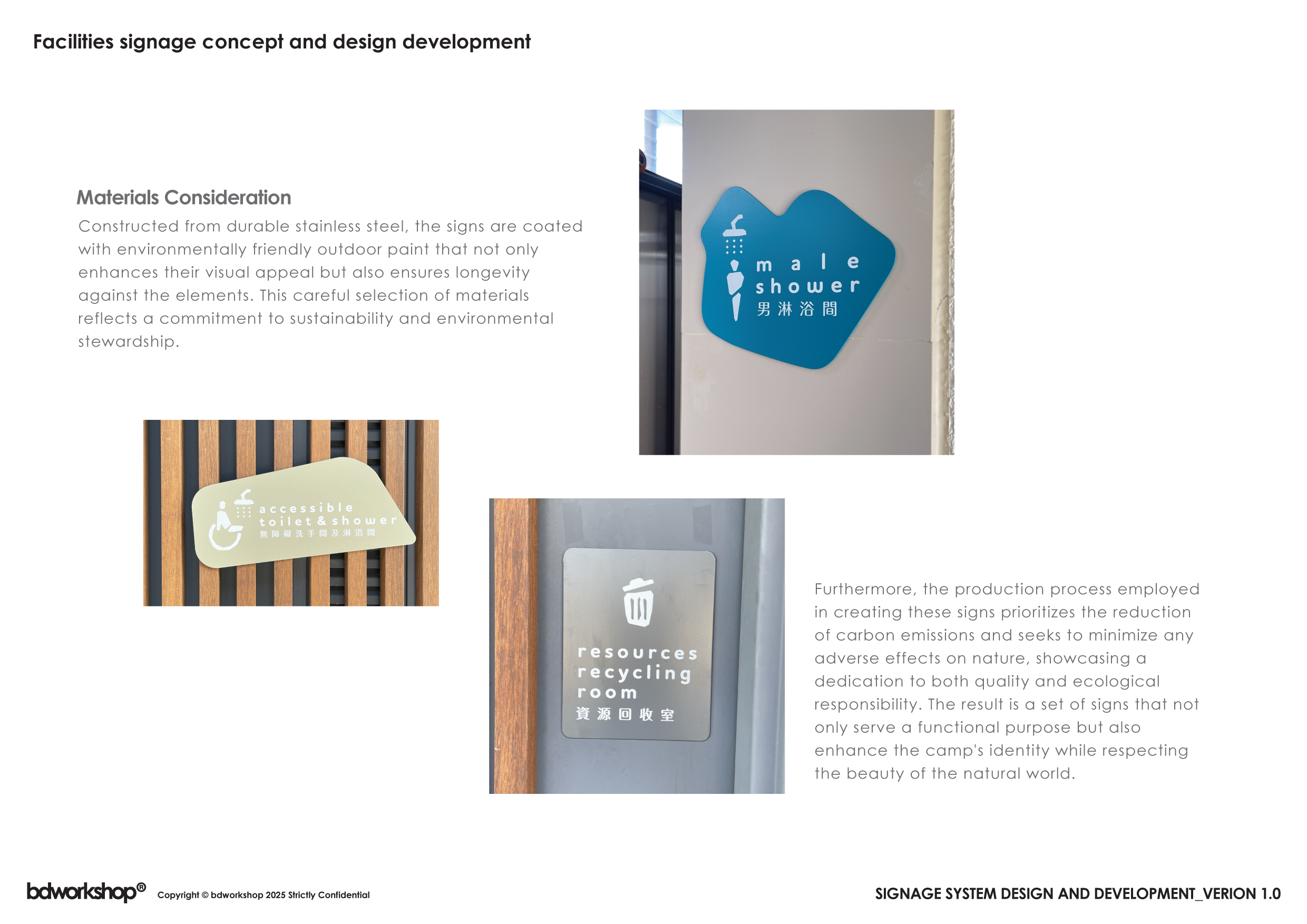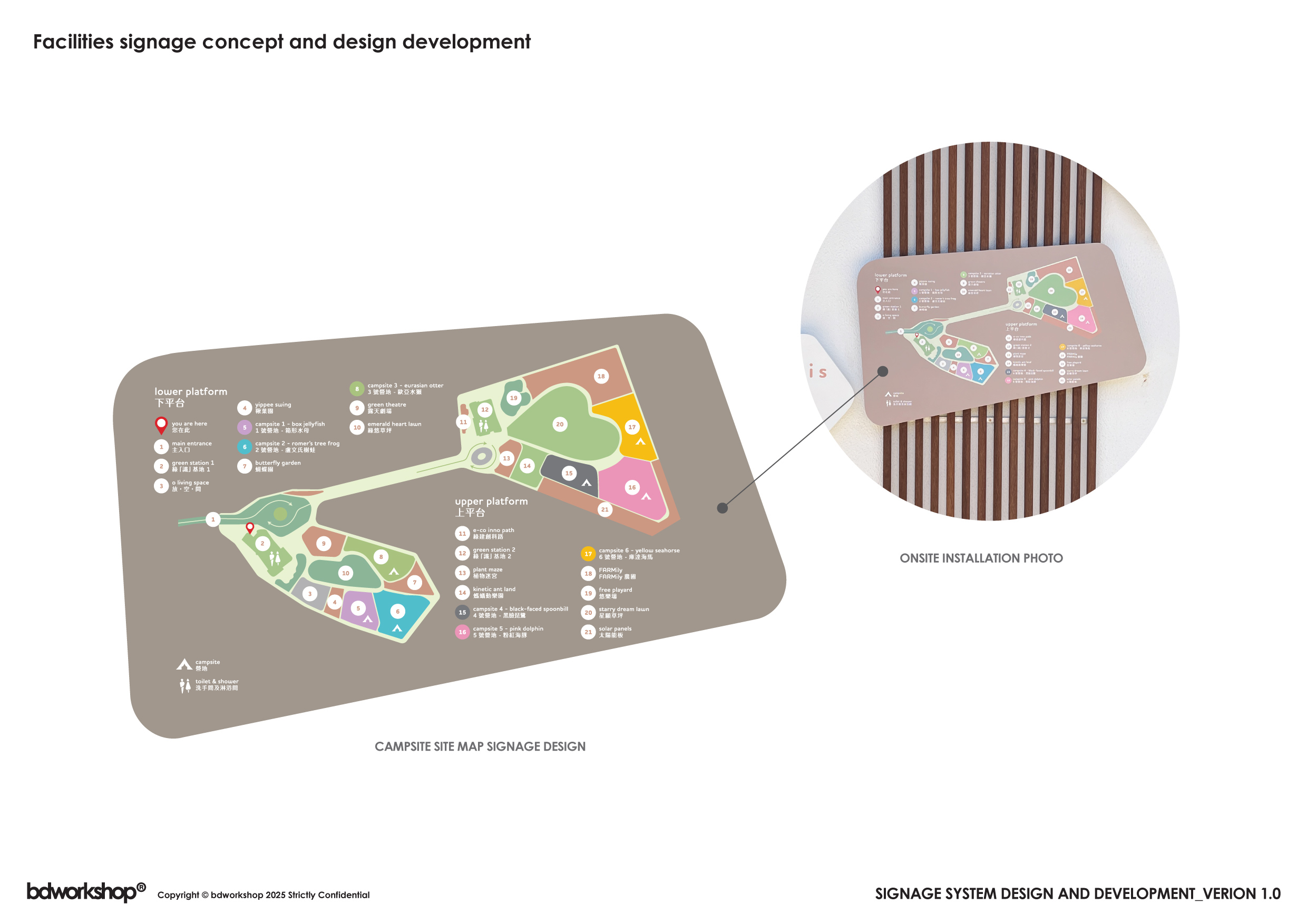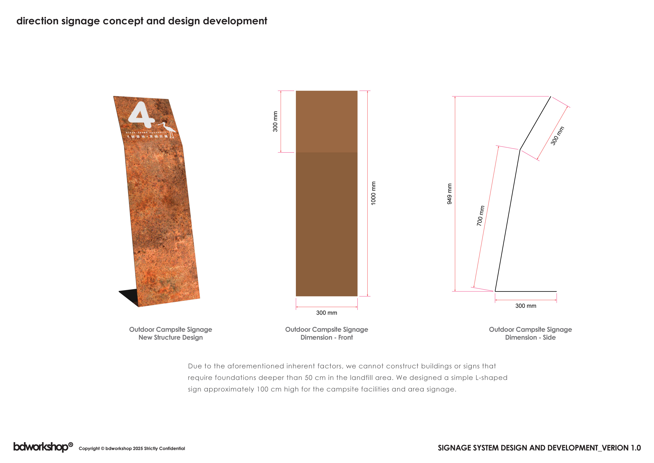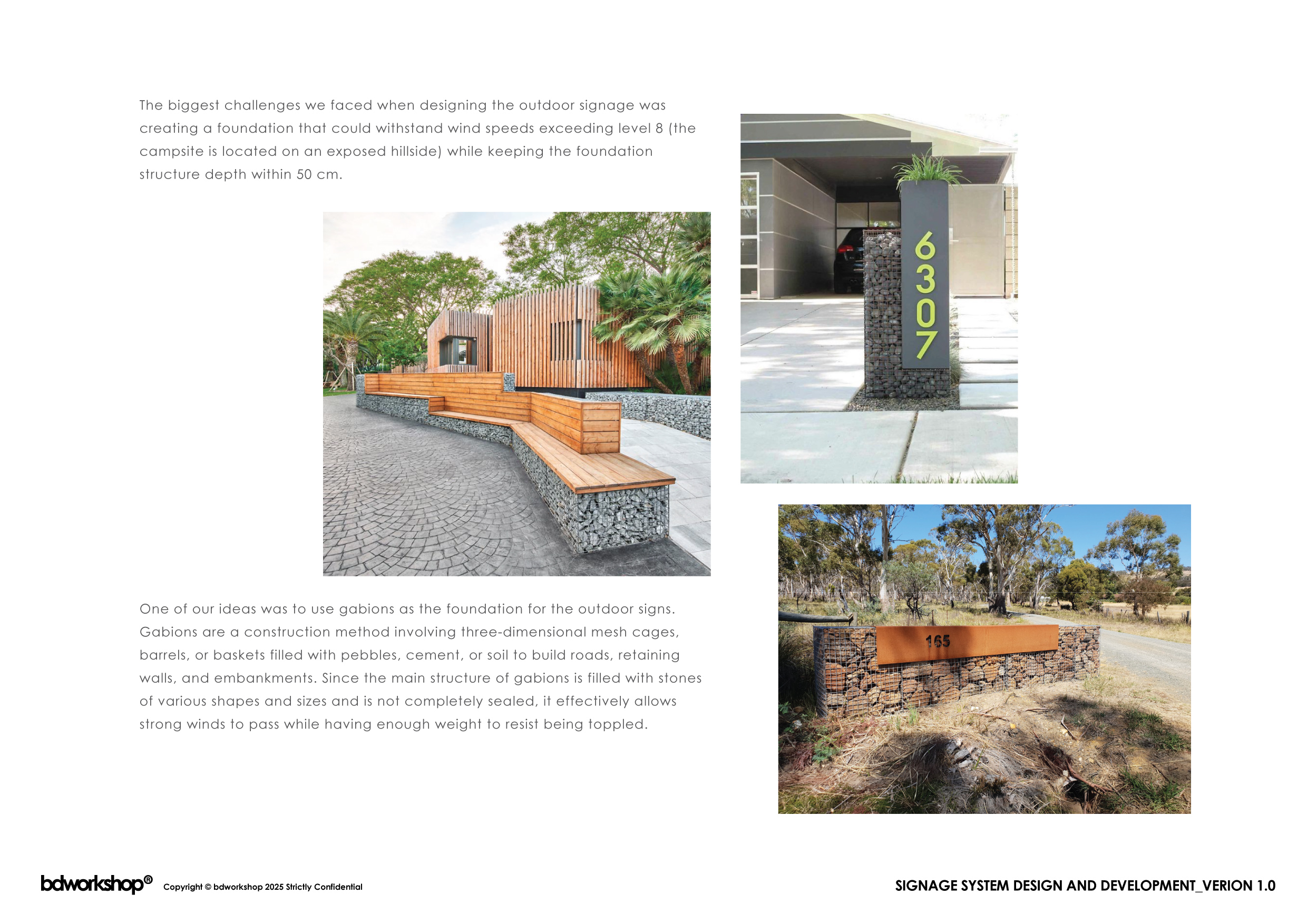 One of the biggest challenges we faced when designing the outdoor signage was creating a foundation that could withstand wind speeds exceeding level 8 (the campsite is located on an exposed hillside) while keeping the foundation structure depth within 50 cm.