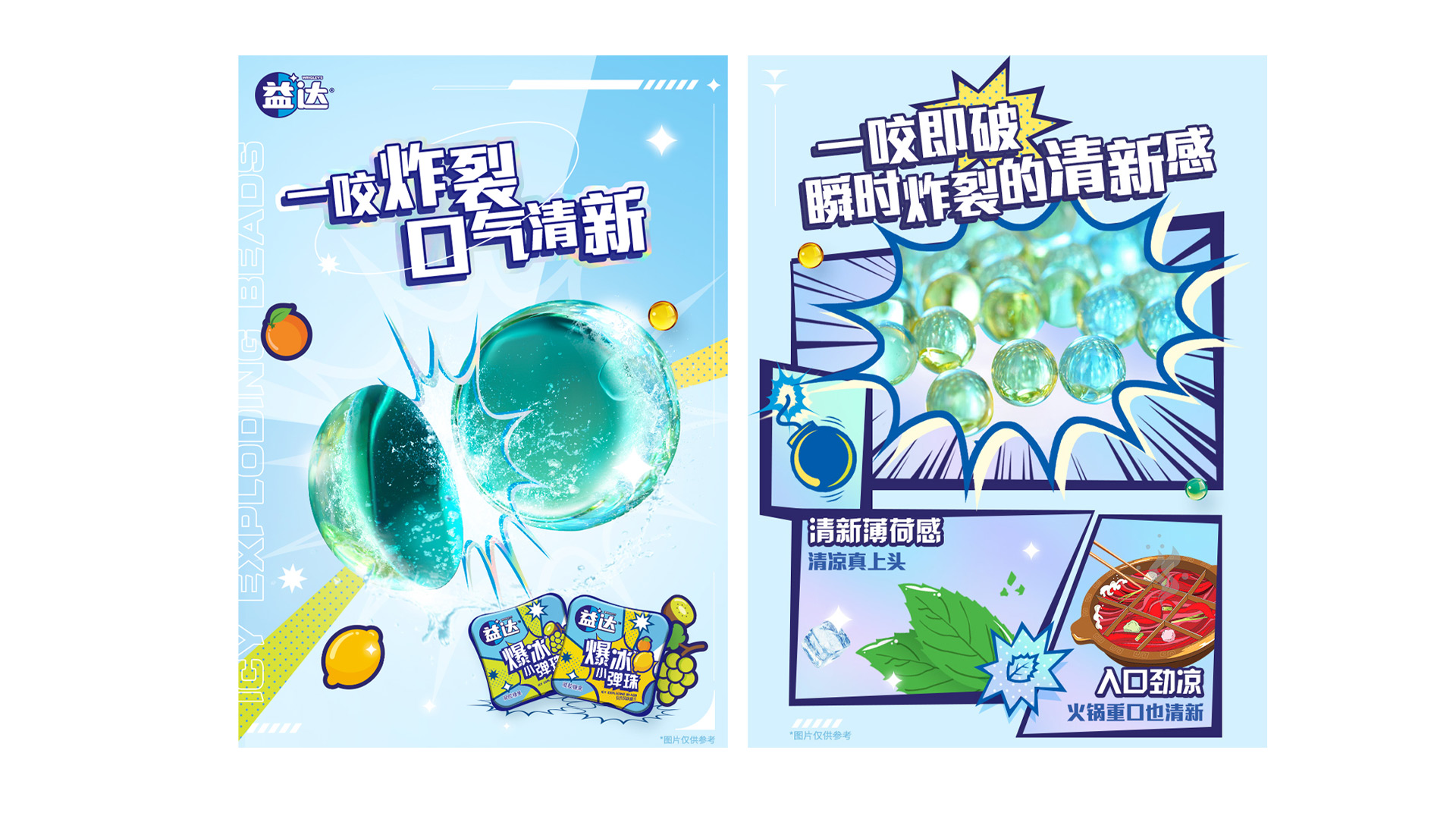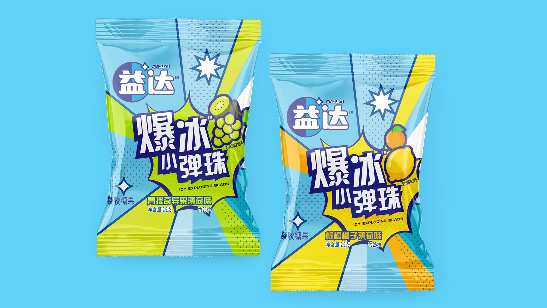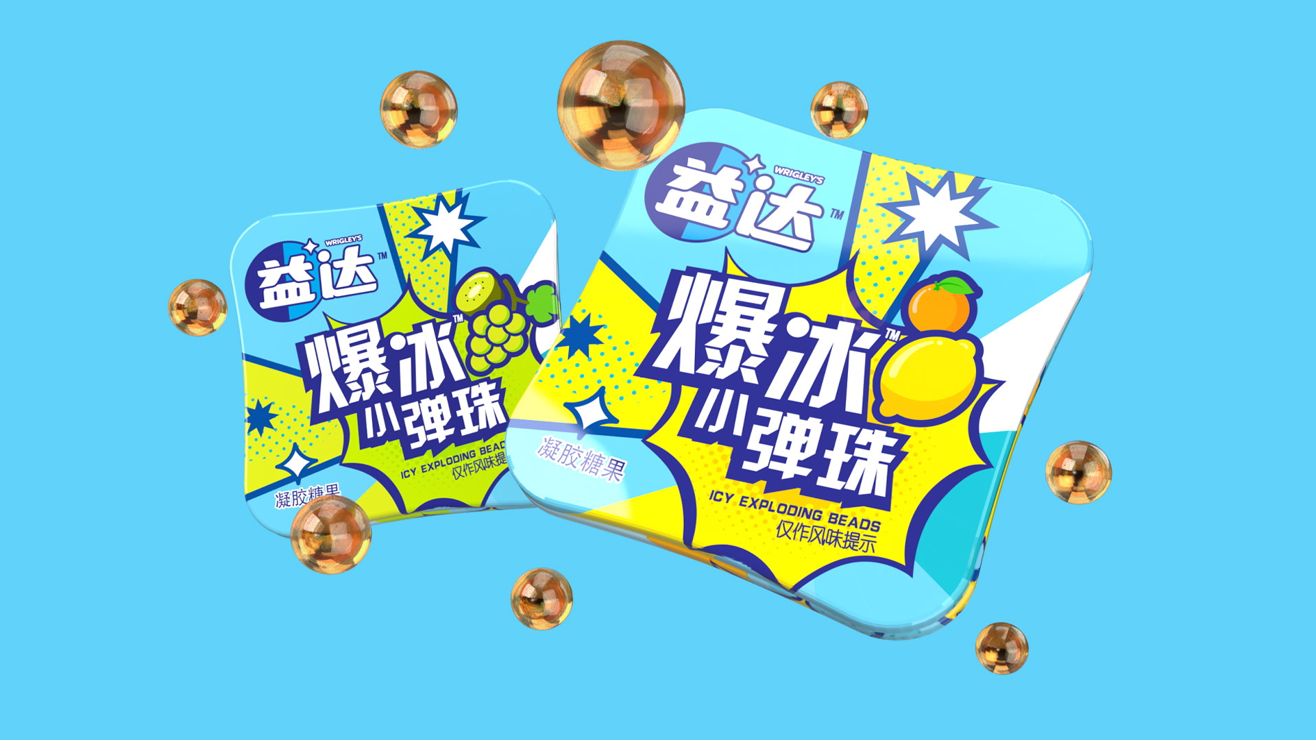 我們為益達全新品牌”爆冰小彈珠”的品牌、包裝及主視覺設計項目。