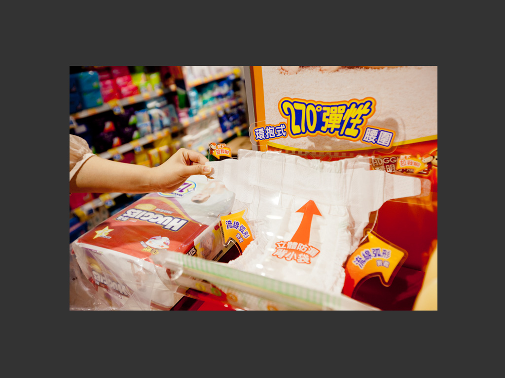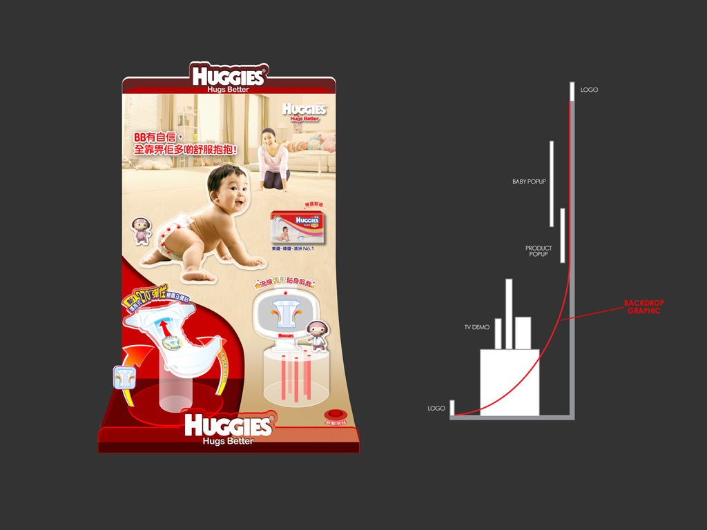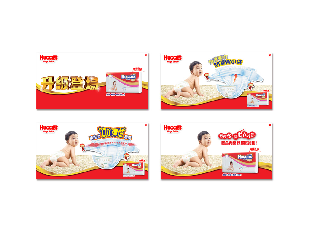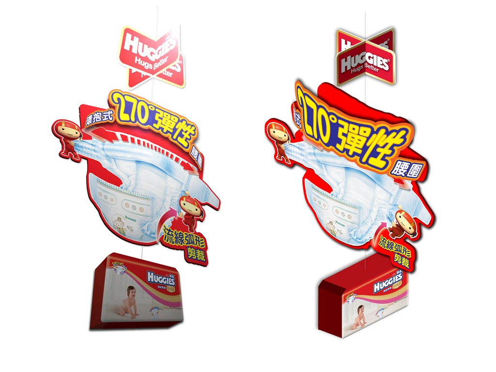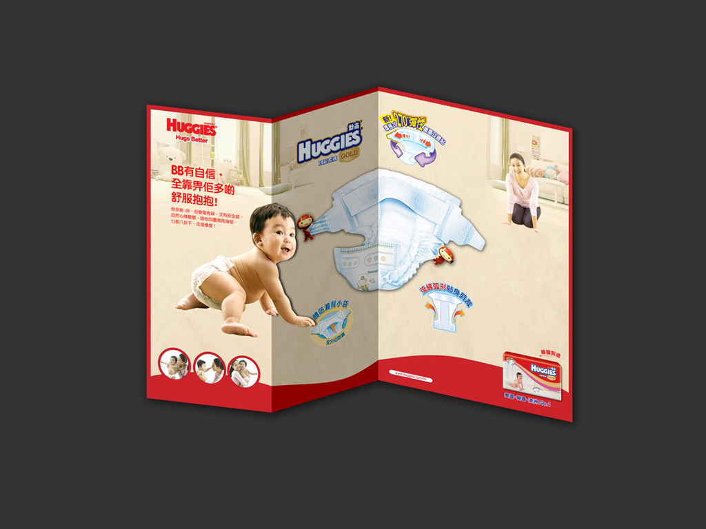 A launch promotion for new diapers product from Huggies. In this project, we provided a set of promotion items for the client, such as mini site, store pops, leaflet and gift pack.