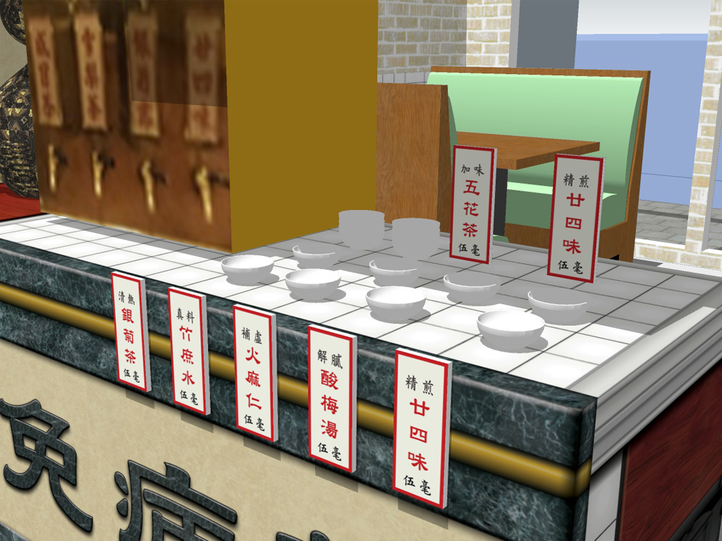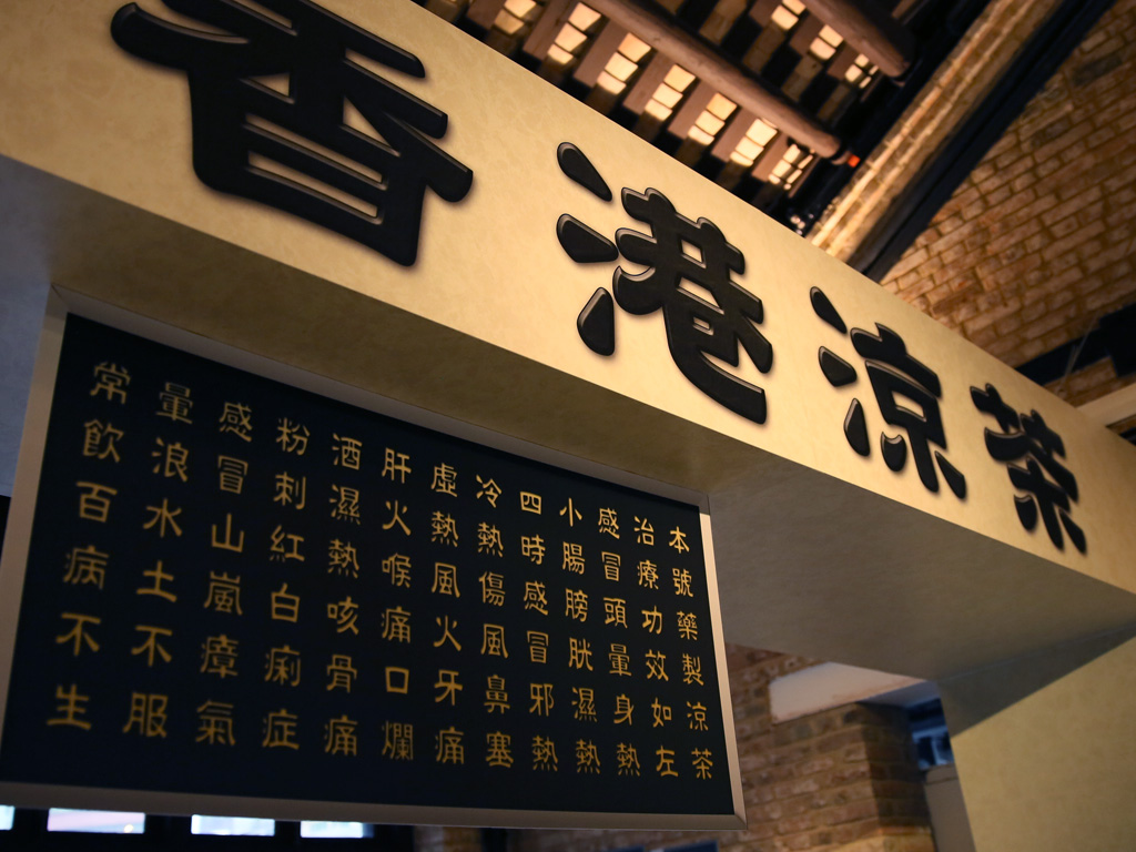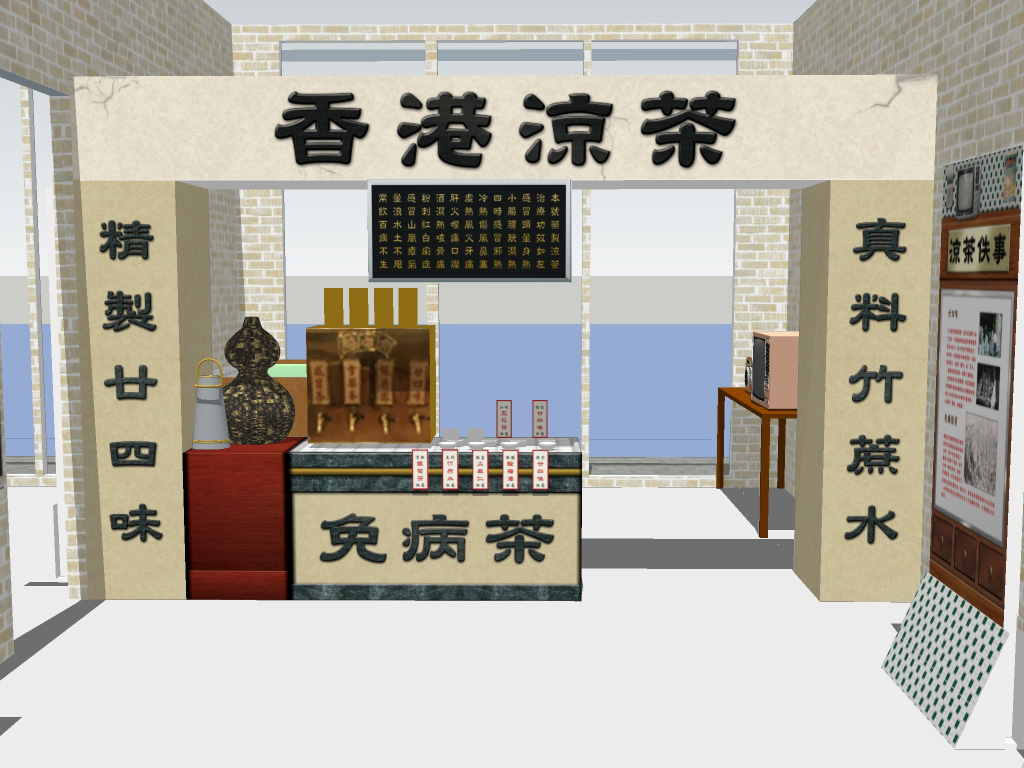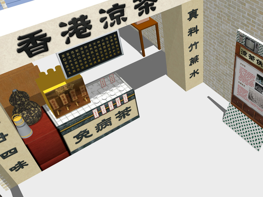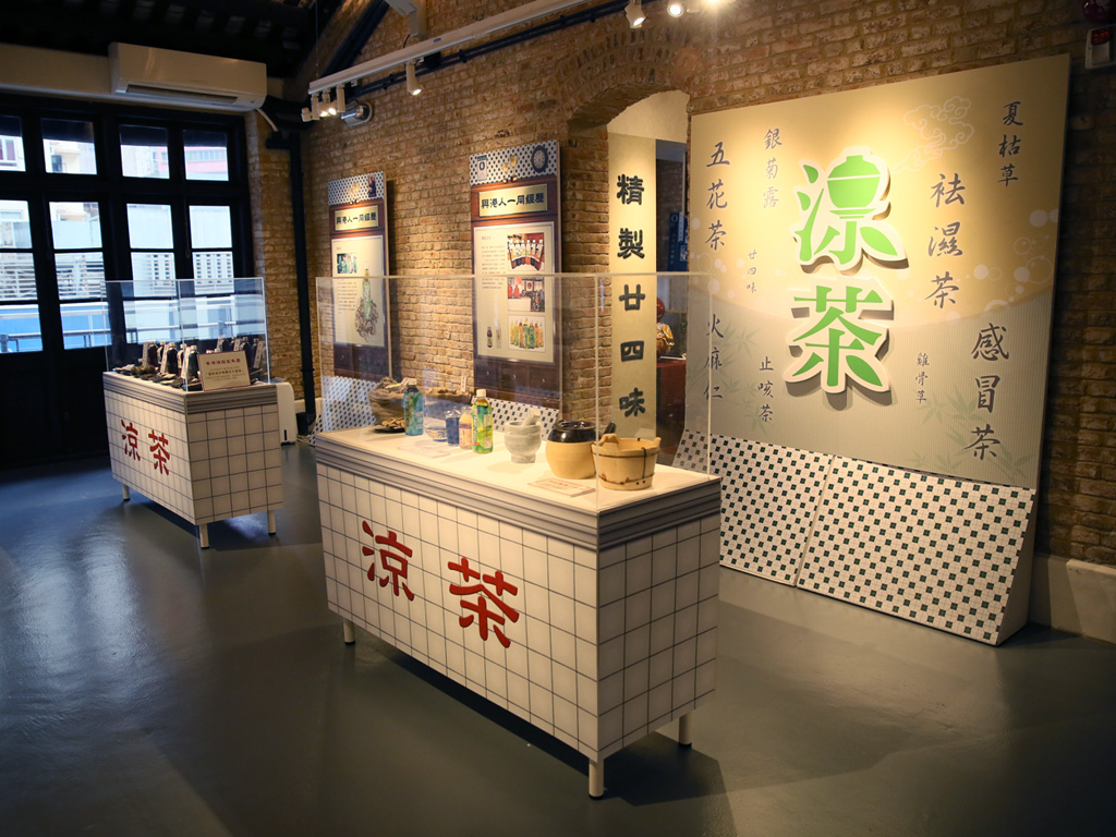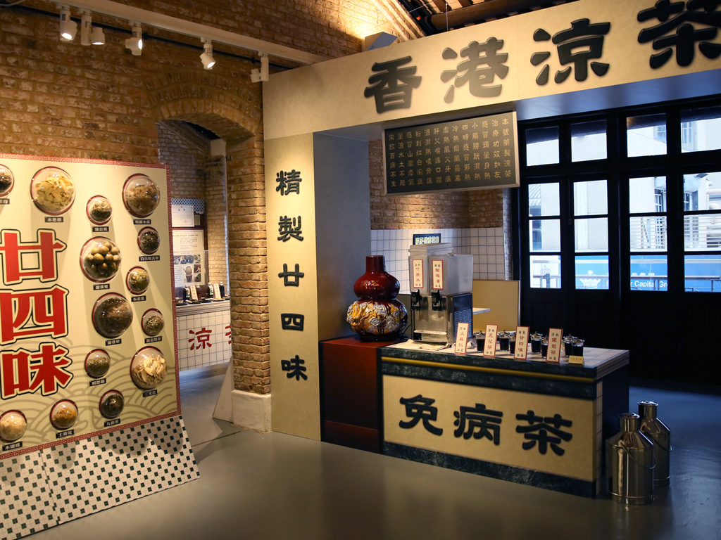 To present the history of Chinese berbal culture of this exhibition, we try to simulate a tranditional old style of Hong Kong tea house for the exhibition decoration.