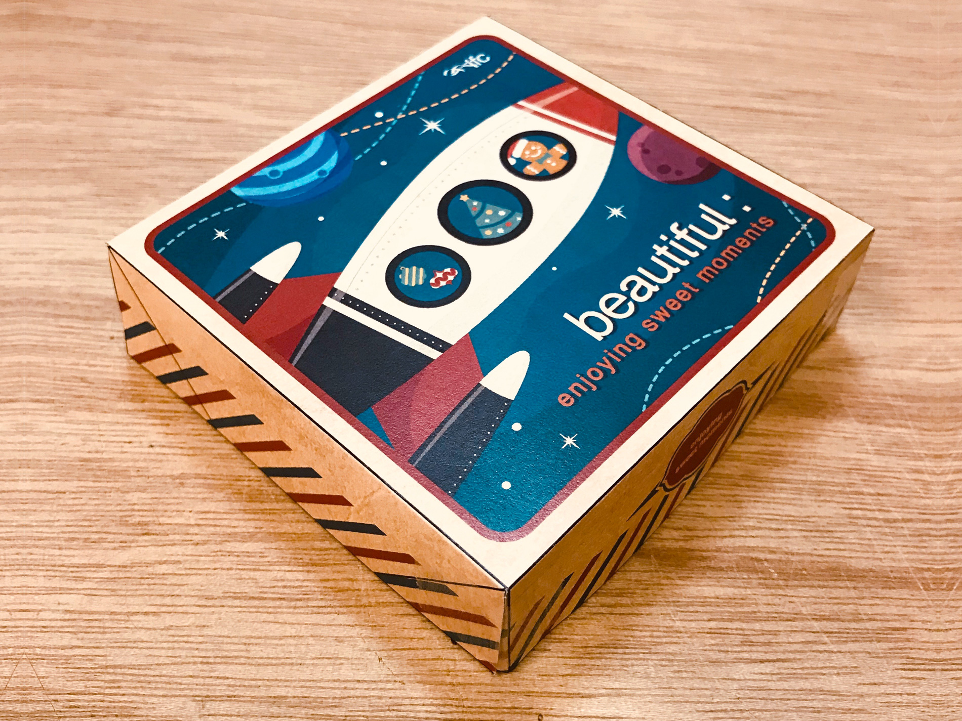 The theme of IFC Mall 2017 Christmas is all about space carnival. The responsibility of our team on the campaign is to build up a jouyful and happy visual for the special christmas cookies packaging. Not only the packaging but also the graphic visual, we combined the space ship (rocket) with christmas elements to enhance the atmosphere of this potevio celebration on December.