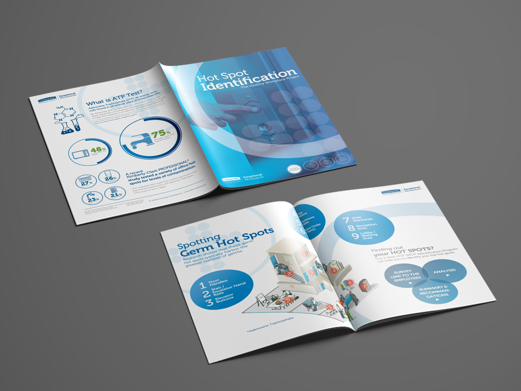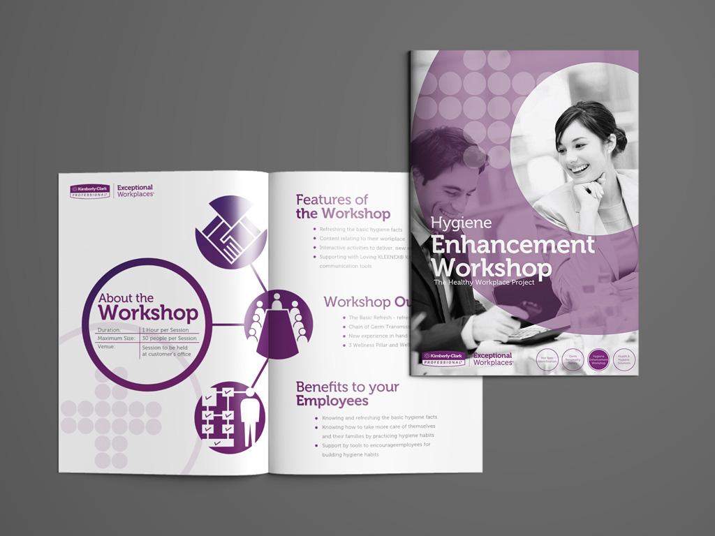 Kimberly-Clark Professional* partners with businesses to create Exceptional Workplaces* helping to make them safer, healthier and more productive. Starting from 2015, Kimberly-Clark Professional HK planning to do more communication with potential clients. As one of the major creative partners with Kimberly-Clark Hong Kong and China, we joint this project from a very beginning stage. Starting to retouch the existing KCP brand identity and then redesign all the communication materials such as leaflet, folder, poster and product container design.