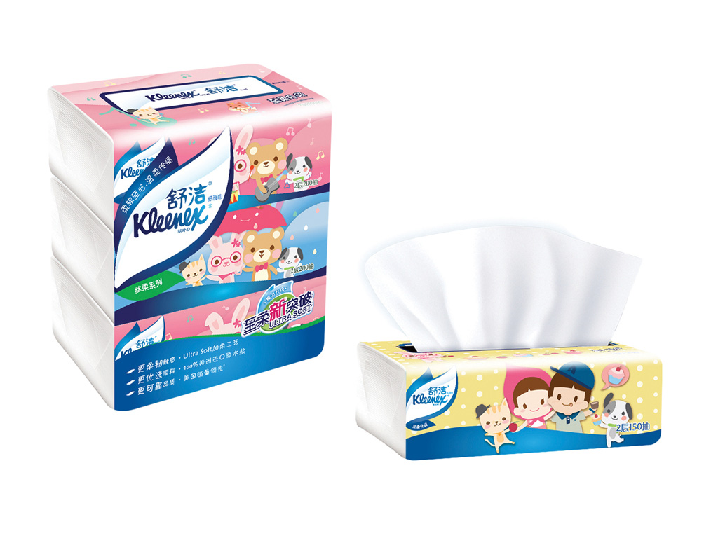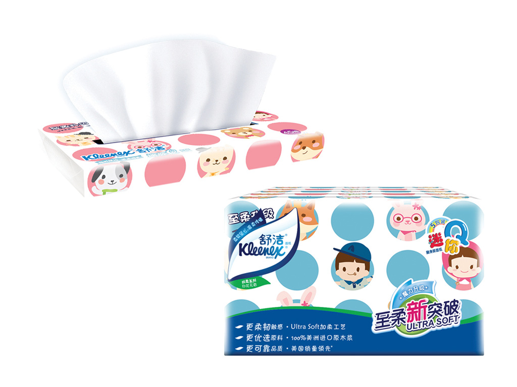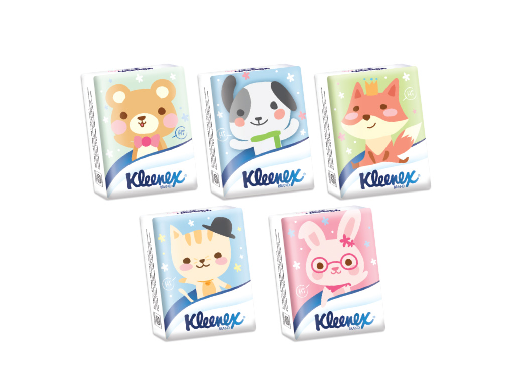 Kleenex China is one of the largest tissue product provider in China. At 2016, bdworkshop redesigned the packaging design for all SKUs and created a set of cartoon characters for their product line to replace the Disney one.