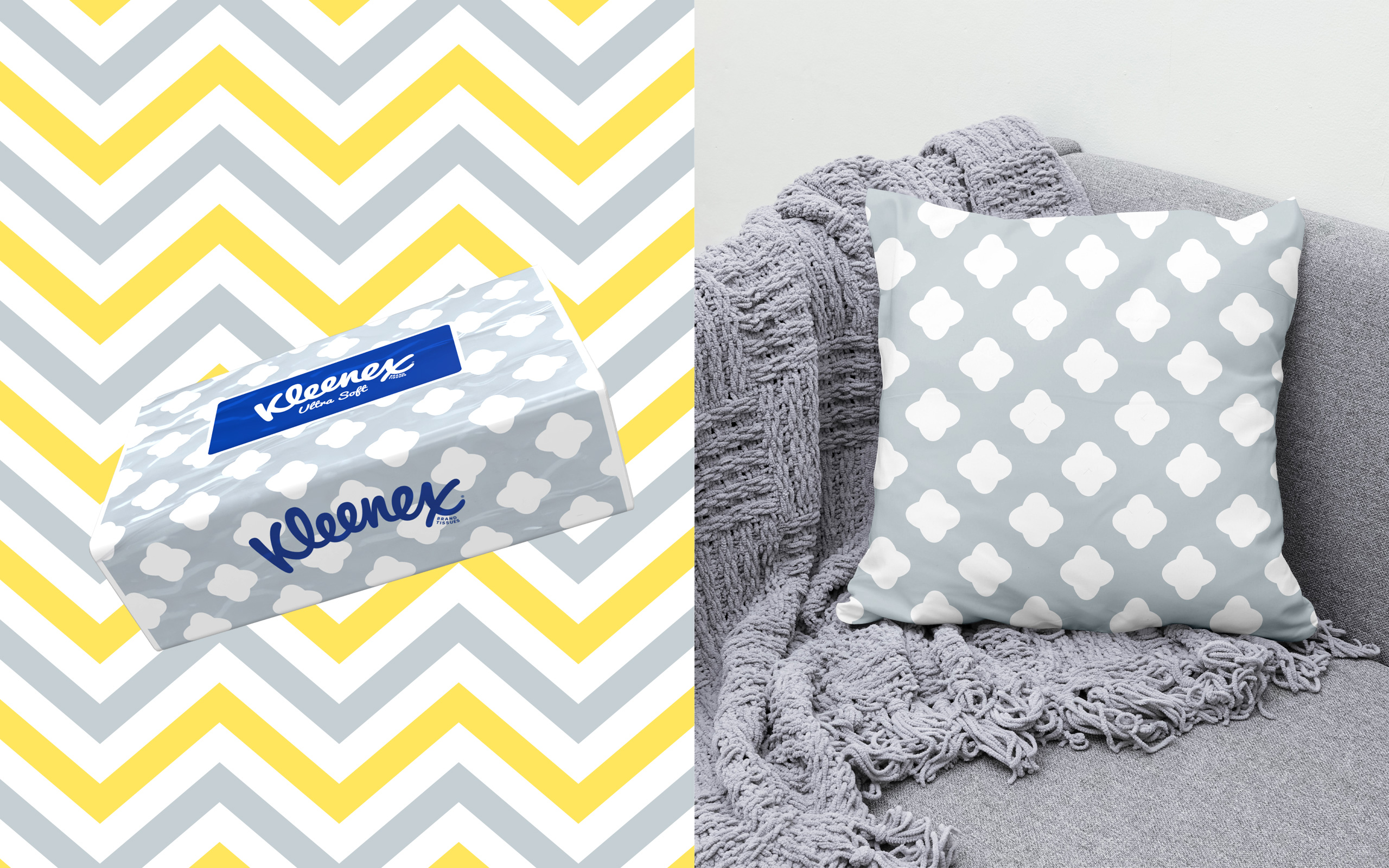 What design can seamlessly blend into a home's interior with a simple and unobtrusive style? Our team was tasked with designing the package for Kleenex Hong Kong's latest tissue paper series. The client emphasized the need for seamless integration, ensuring that the package can be discreetly placed around the home, including the dining table, sofa, bedroom, and bathroom, without feeling out of place.