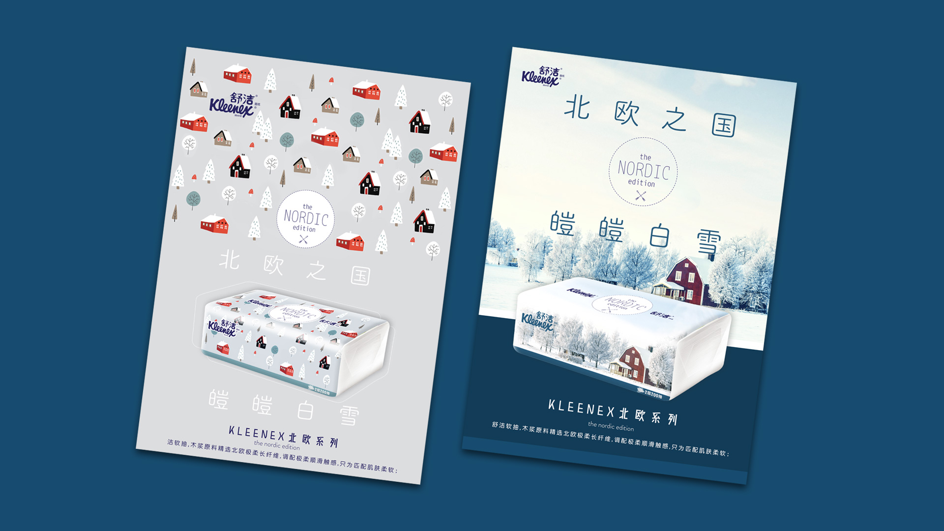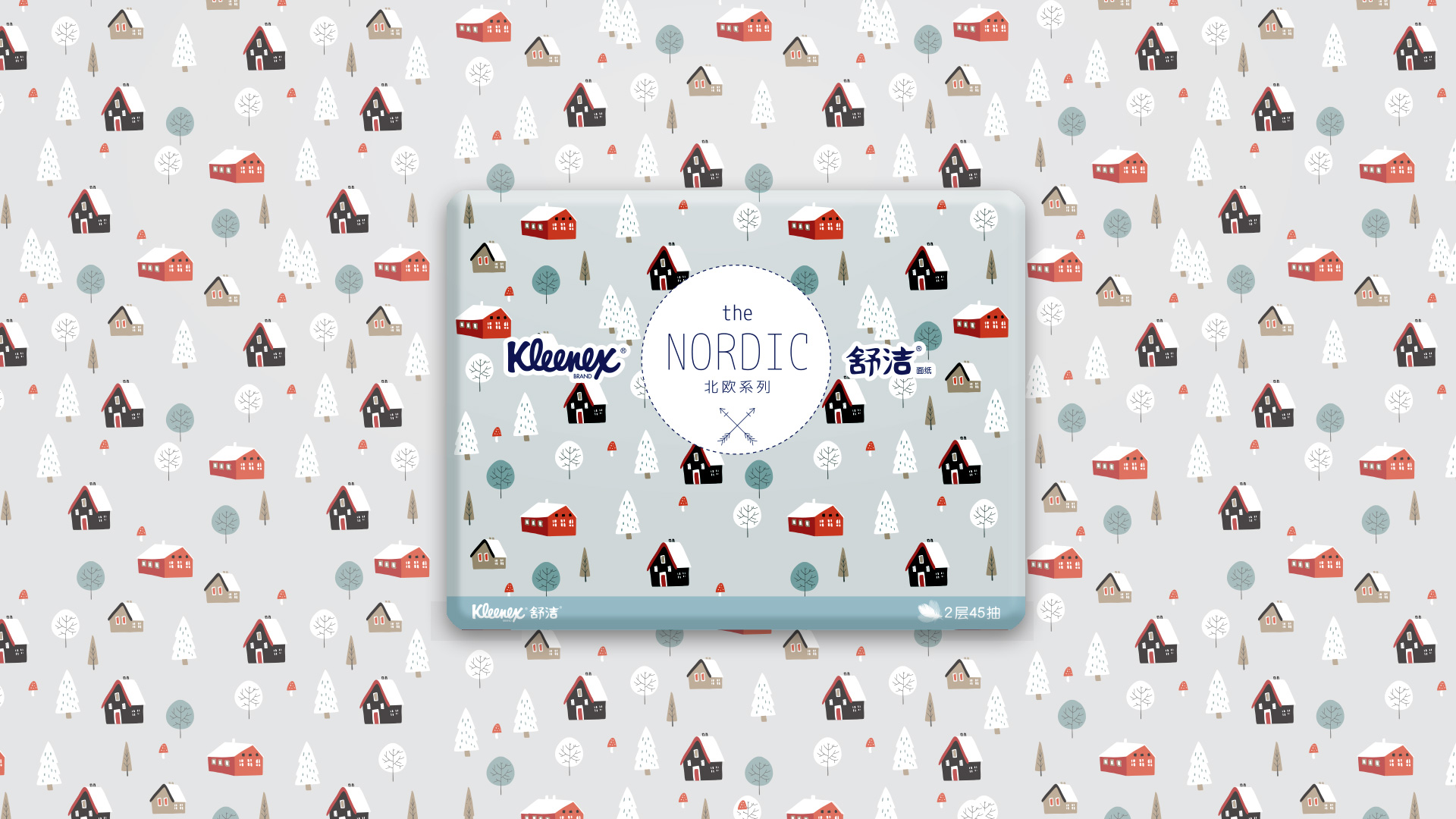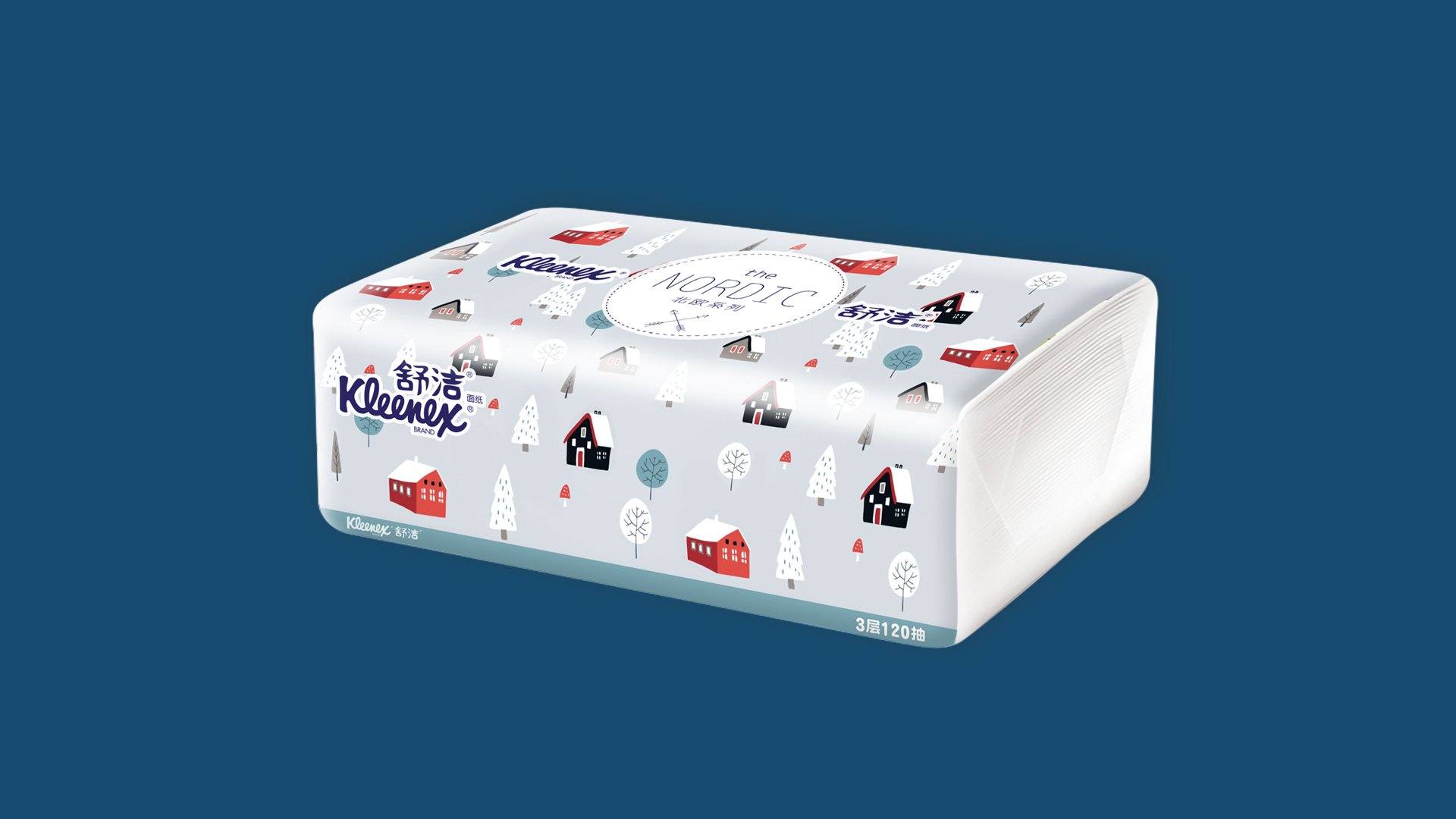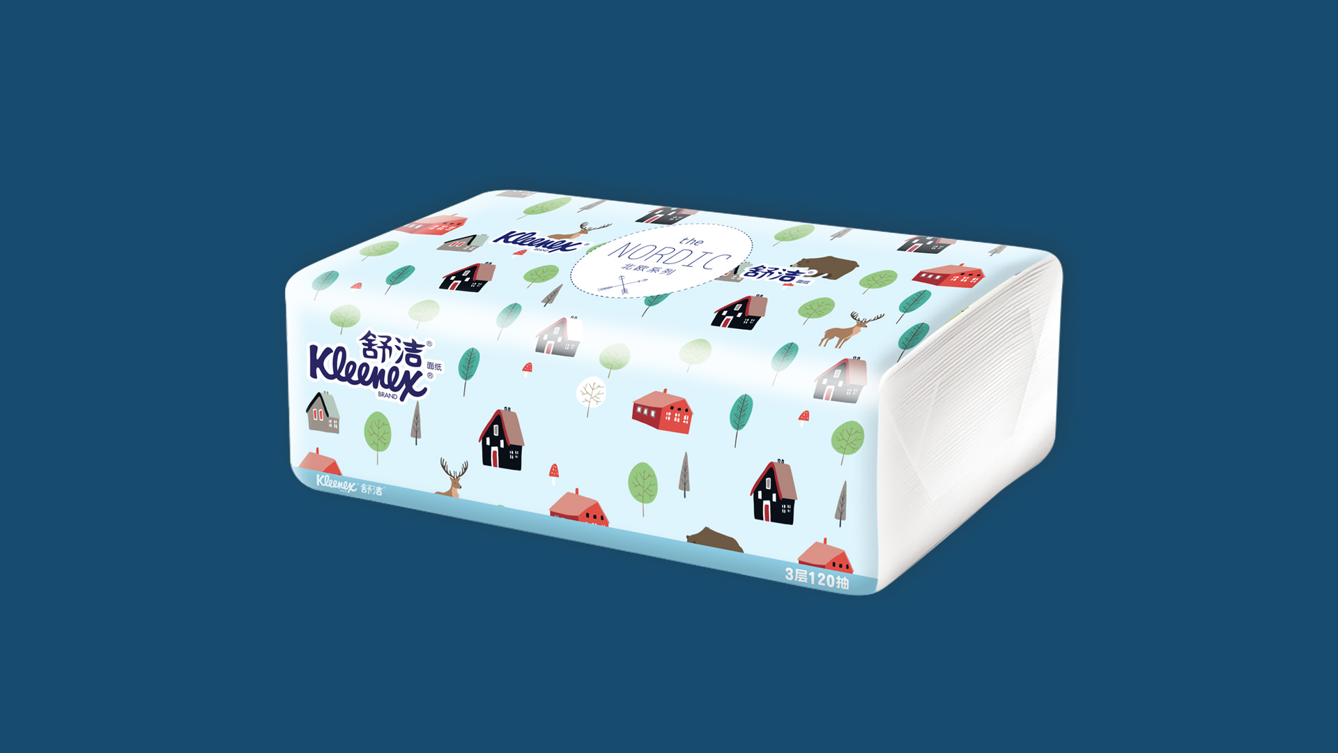 Kleenex's brand new Nordic series soft pack tissue branding and packaging design. Compared with other colorful soft pack tissue series design, we use the Nordic small village illustrations on this high-end product line, and the colours are also cooler in Nordic style. The goal is to give consumers a more mature packaging option.