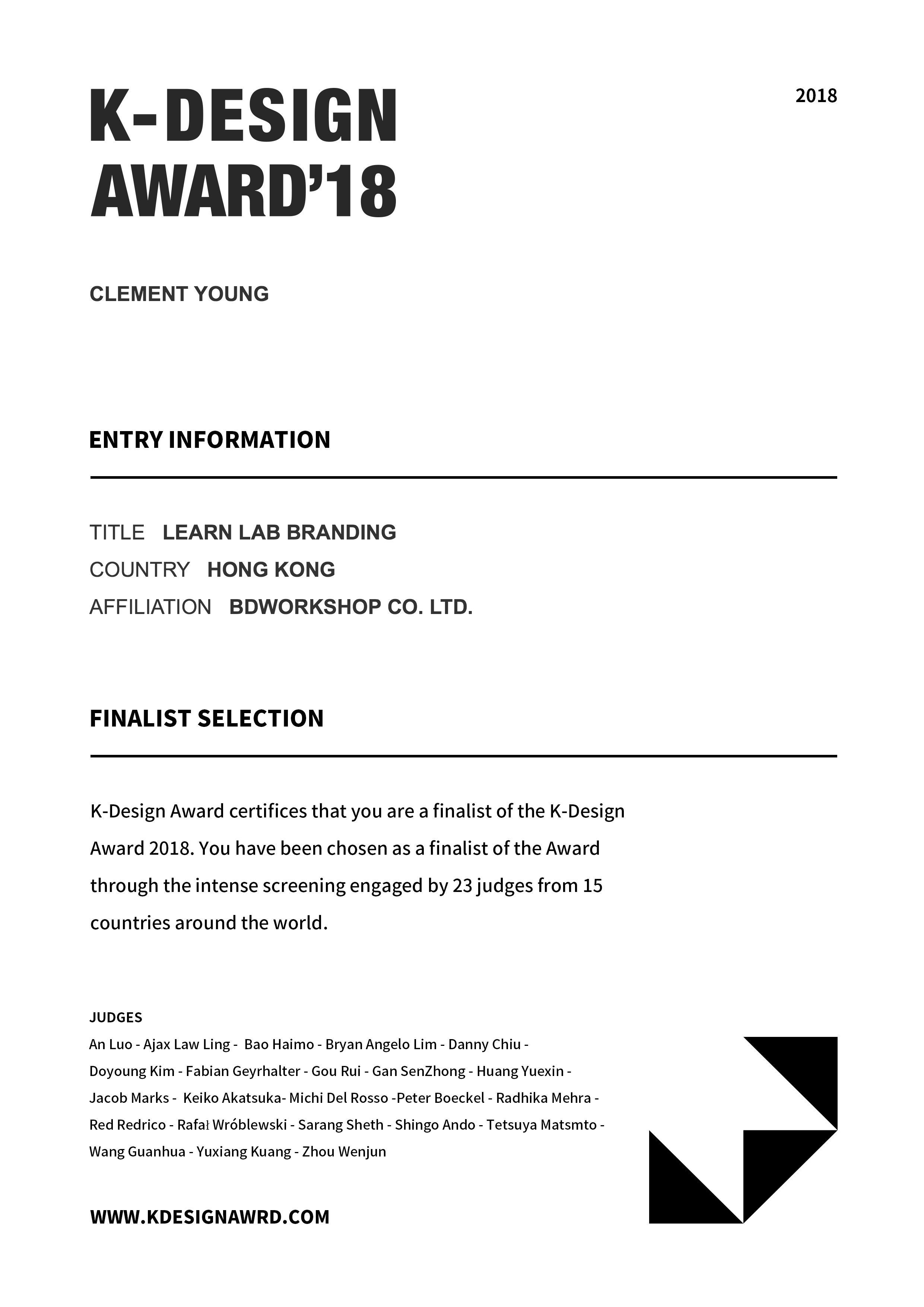 Awarded Project Link: https://www.bdworkshop.com/works/learn-laboratory-branding-design