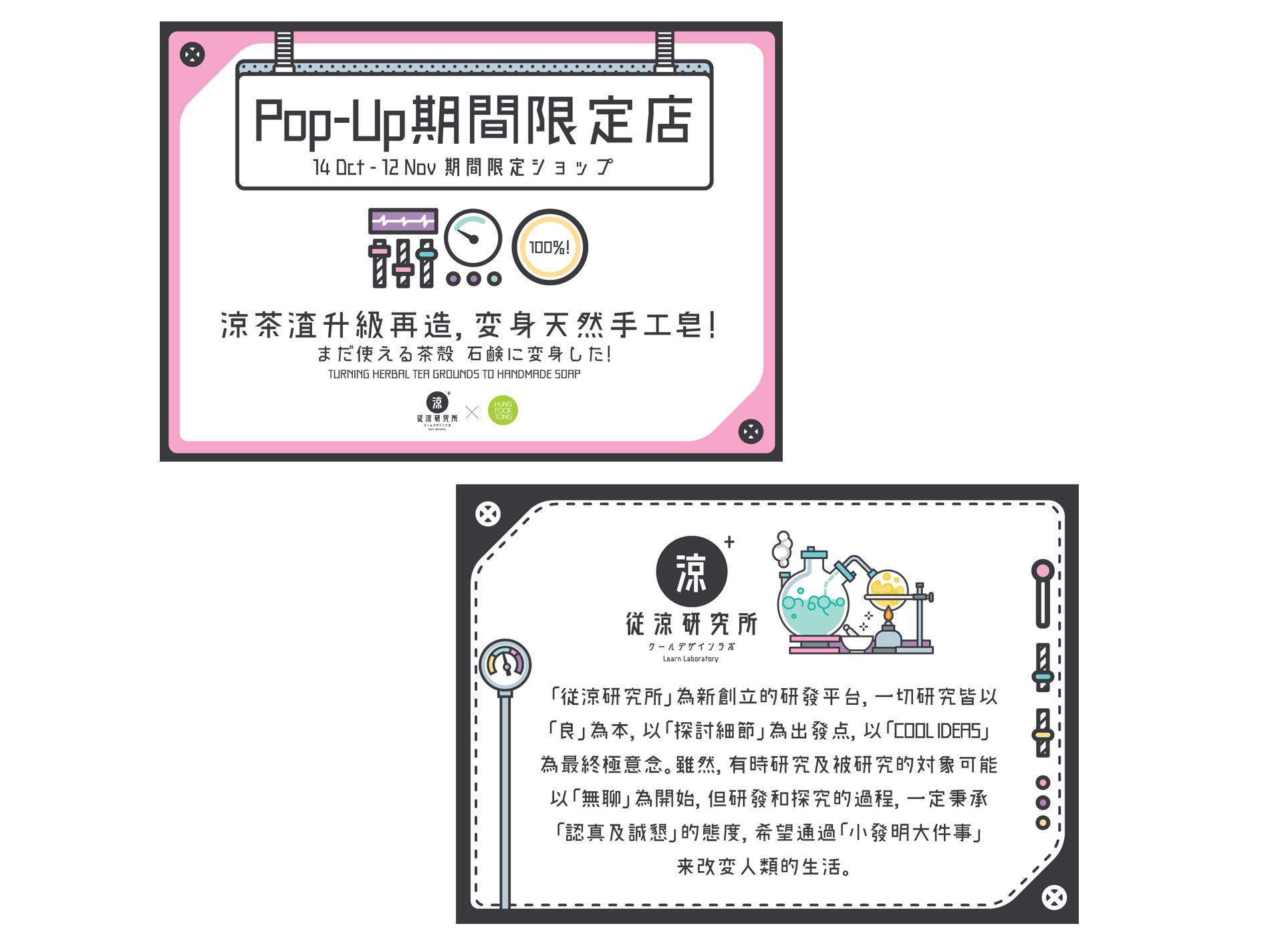 A creative project for new startup company “Learn Laboratory”, who working hard on up-cycling and trying to transform everything in the world to bring out the true values of everything itself. From branding, packaging, product development, photo shooting, video production PR event to popup store installation. We have try to build up a new image for this “Laboratory” with funny graphic, colourful image and cartoon characters.