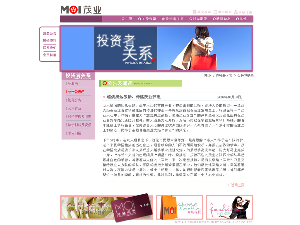MOI Internal was listed on the Hong Kong Stock Exchange in June 2008. We design and developed the Hong Kong website for their listing.