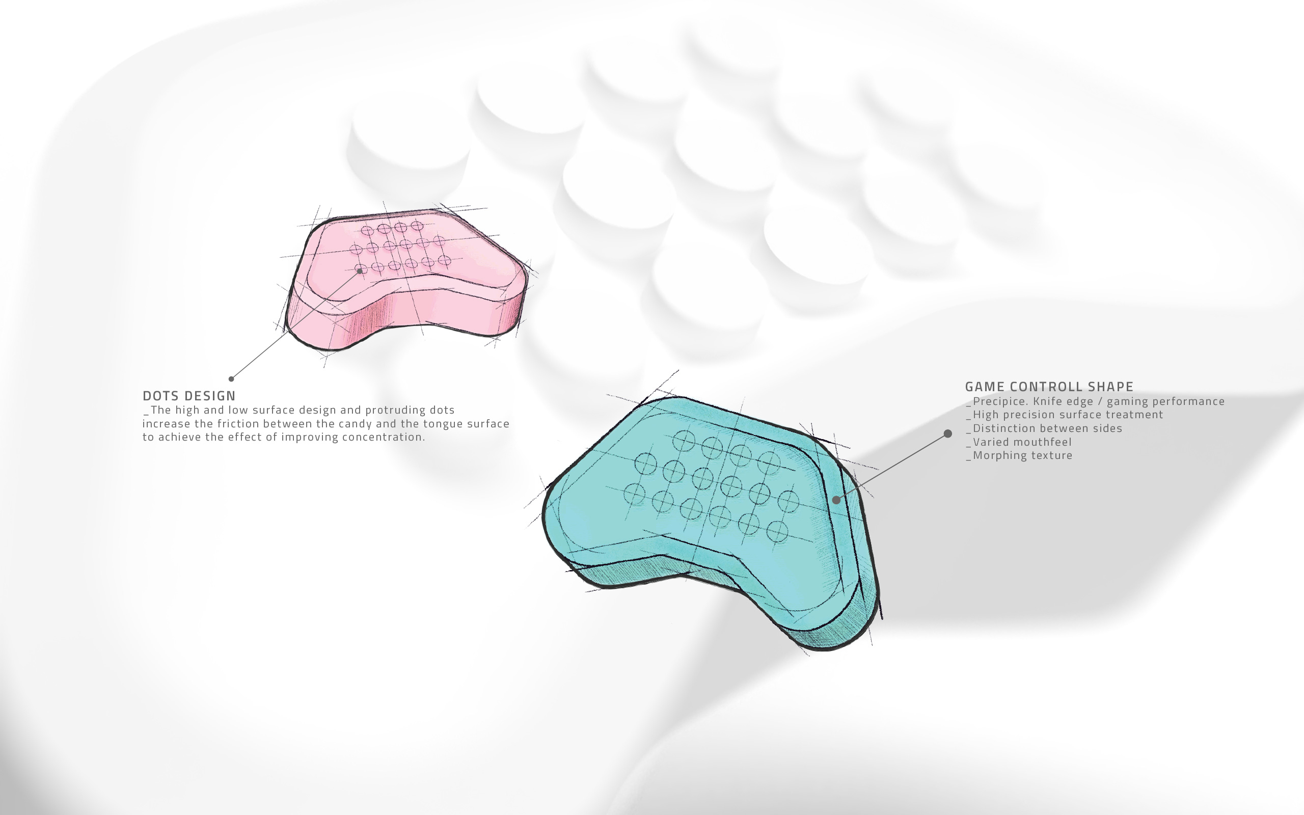 One of the highlights of the entire design project is that our team participated in the first product appearance design research and development. From the first draft to the final design, we designed a total of more than 20 candy product appearances for testing. The unique candy-shaped design is the world's first tablet mint designed in the shape of a game console controller. We have also applied for design patents globally and domestically.