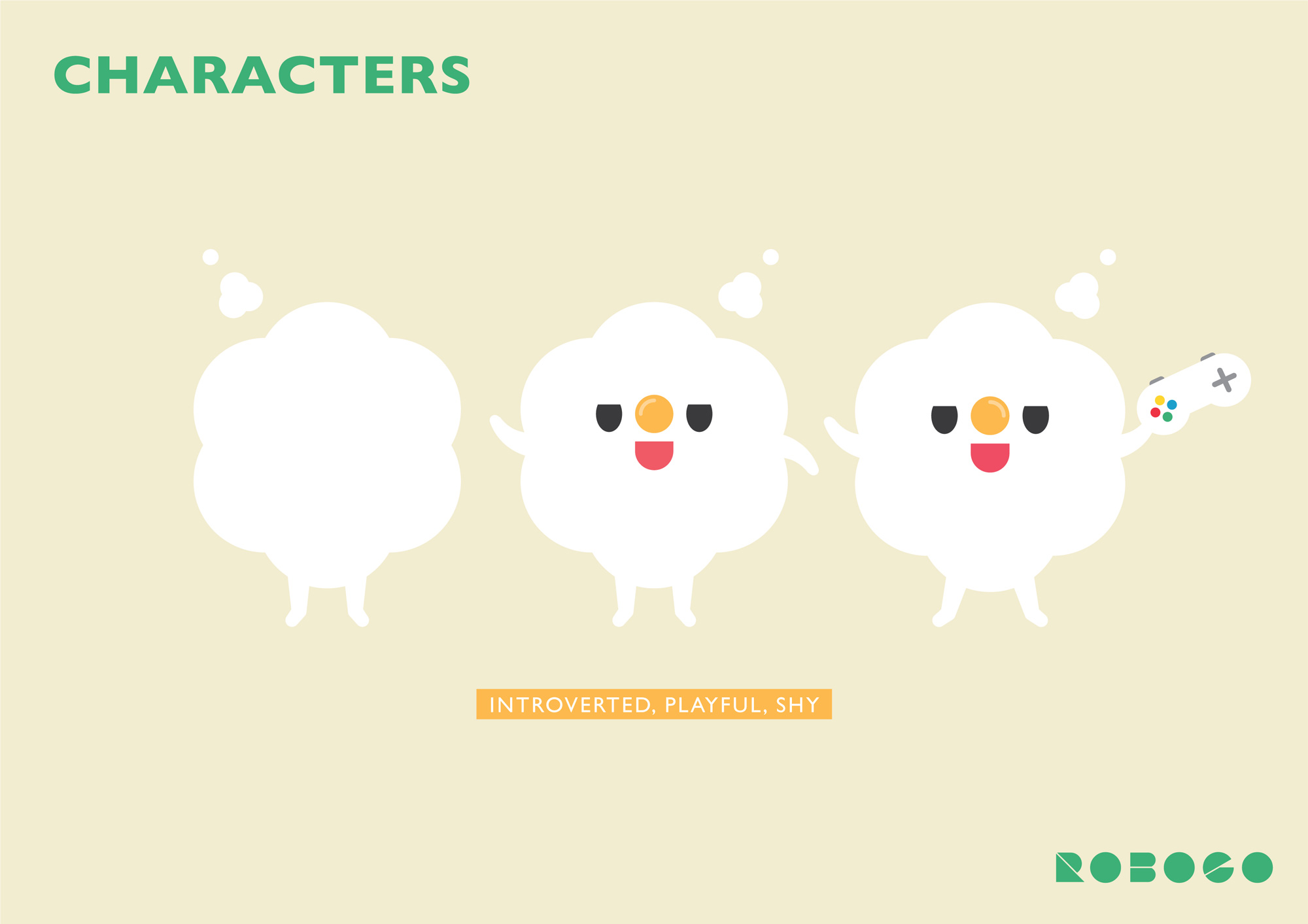 在繽紛色彩的基礎上,我們還設計了五個卡通角色,每個的外型由各種基礎形狀所組合出來,配合了整個品牌的設計理念。各個角色個性設定是希望貼近新生代喜歡接觸、探索新事物的特質。這樣比較容易與小朋友產生共嗚,建立感情橋樑,增加上課的投入感。