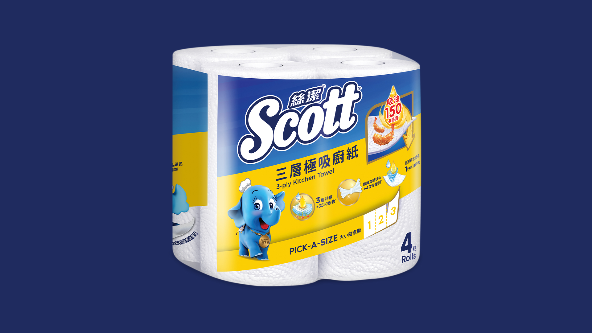 2011年,我们协助 Scott Hong Kong 重新设计了其旗舰产品系列之一 Scott 厨房卷纸的包装设计。该产品系列在市场上畅销了十多年,包装设计也始终如一。这表明我们的设计经受住了十年的考验,向消费者展示了无论过了多少年,它都是一个标志性的、永恒的设计。