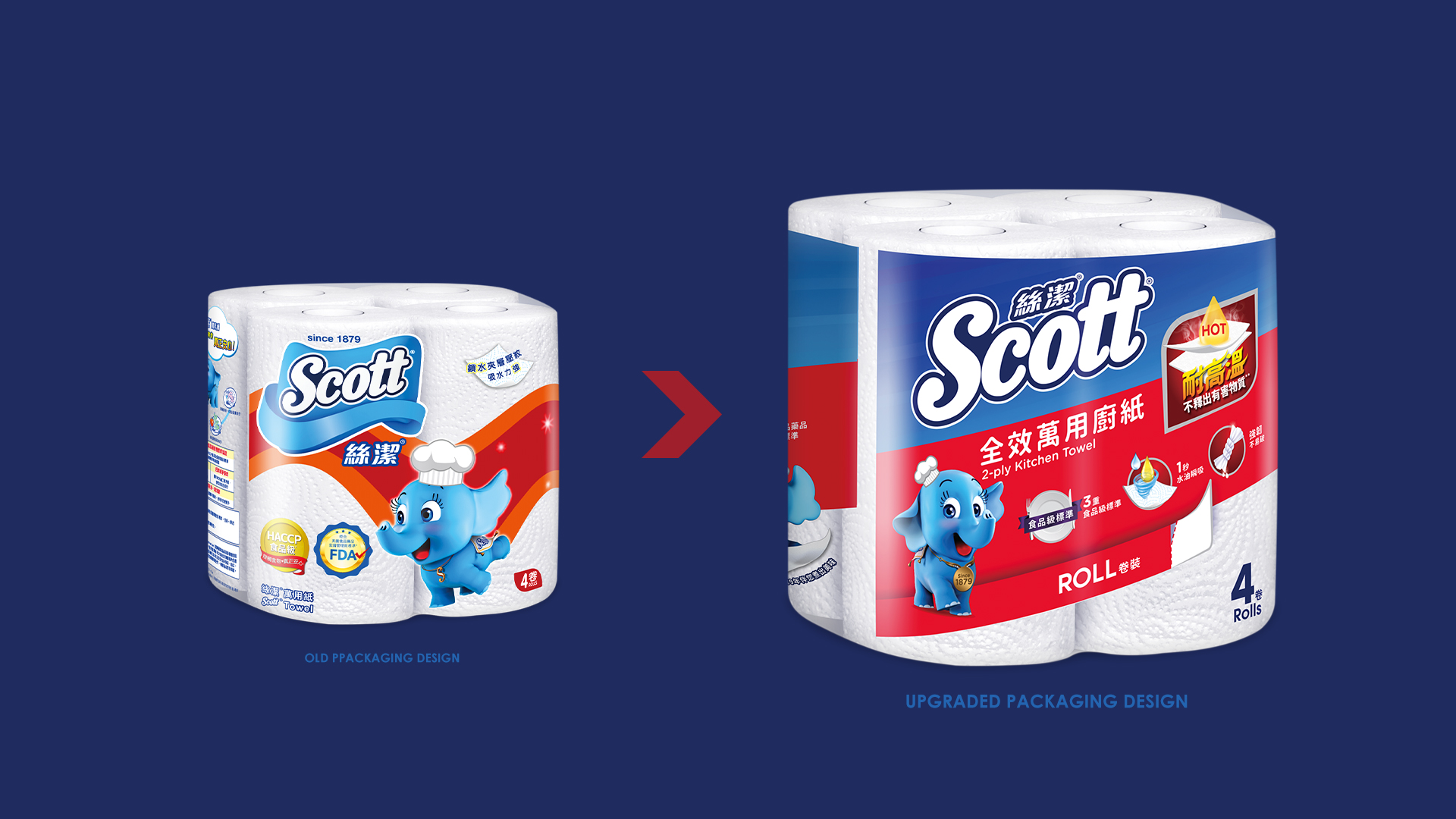 In 2011, we assisted Scott Hong Kong in revamping the packaging design for one of their flagship product lines—Scott Kitchen Paper Roll. This product line has been the top seller in the market for over 10 years, and the packaging design has remained the same. This indicates that our design has stood the test of time for a decade, demonstrating to consumers that it is an iconic and timeless design regardless of the years that have passed.