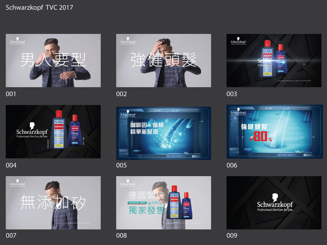 In 2017 Schwarzkopf launch the whole series of products in Hong Kong market. After the great success of first product launch campaign, client would like to have a TVC for their second wave promotion. From ideas to storyboard, script, vo and post production, we have produced a 20sec TVC for the advertising campaign. The TVC major focus on the main product feature and key target audience - the 40+ male customer who has hair growing problem.