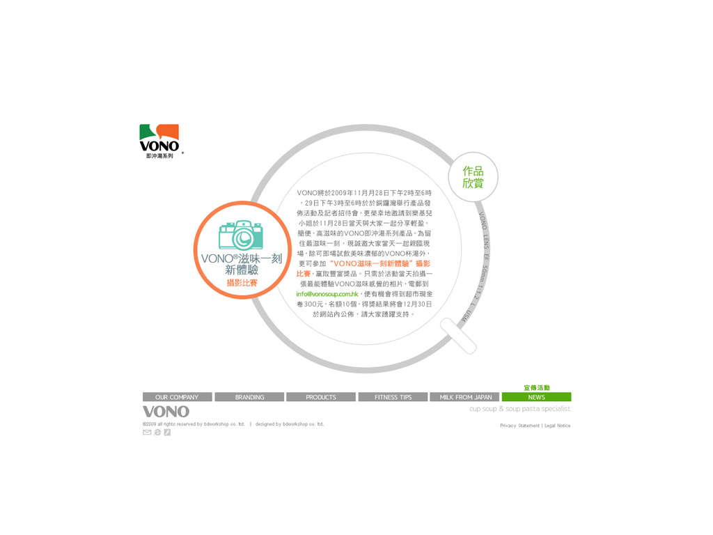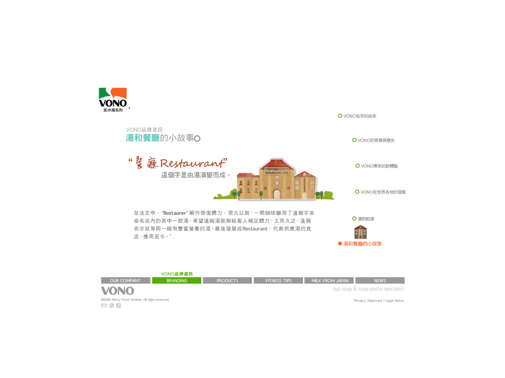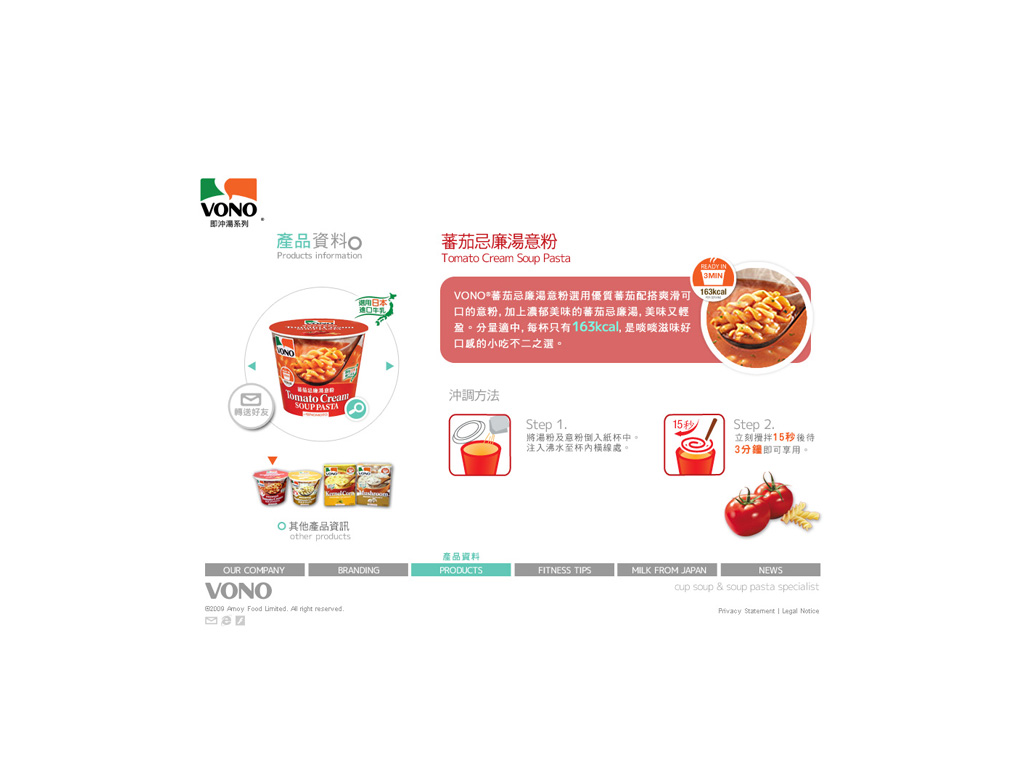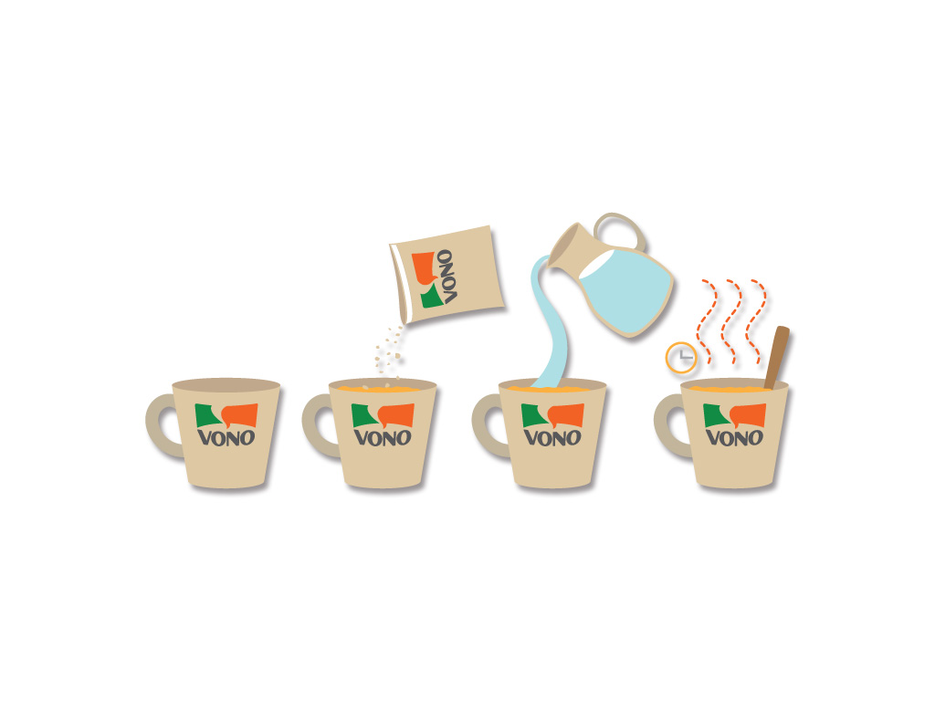 VONO的研發靈感來自於在繁忙的都市生活中,人們都希望享受舒適、放鬆和自然的一刻。因此 VONO希望透過美味的湯,成為一種能輕易提升生活滿足感的簡便零食,並帶給人溫暖滿足的感覺。VONO產品的特點是相比其他零食如薯片、杯麵等卡路里含量較低、因此在享受美味小食的同時不會帶來罪惡感或負擔,而且容易預備,必定是正餐之間小吃的不二之選。