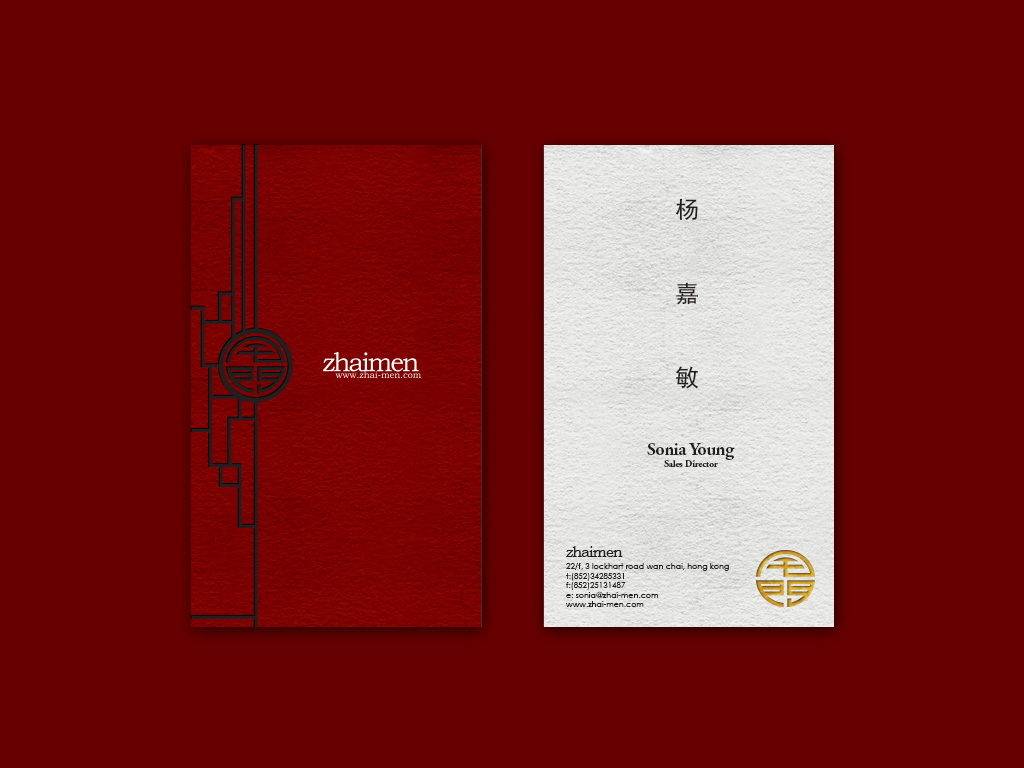 Branding identity design and development for a Hong Kong based artistic trading company called Zhaimen.