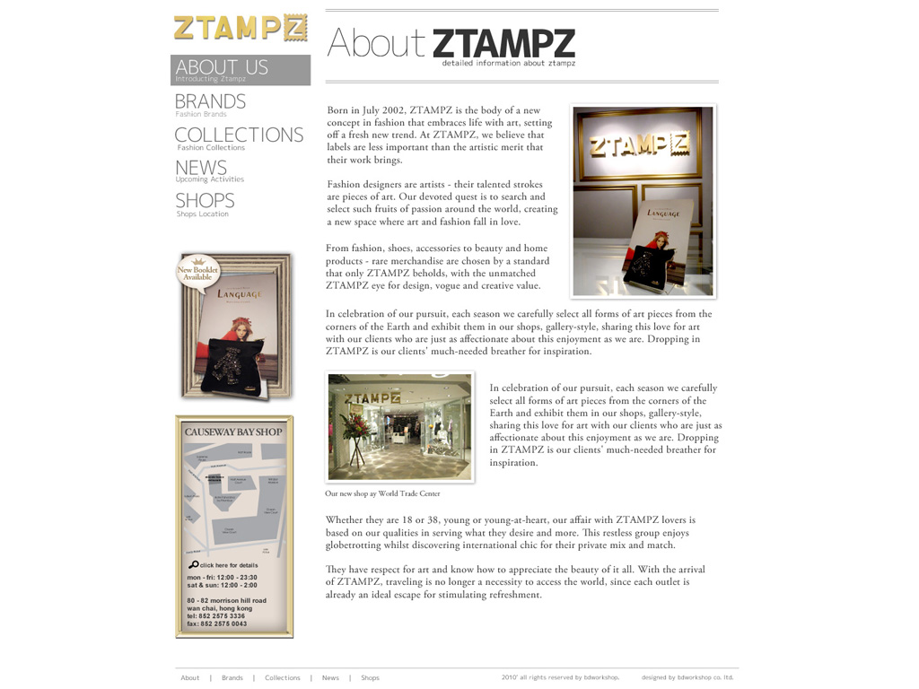 Established in July 2002, ZTAMPZ is the body of a new concept in fashion that embraces life with art, setting off a fresh new trend. At ZTAMPZ, we believe that labels are less important than the artistic merit that their work brings.